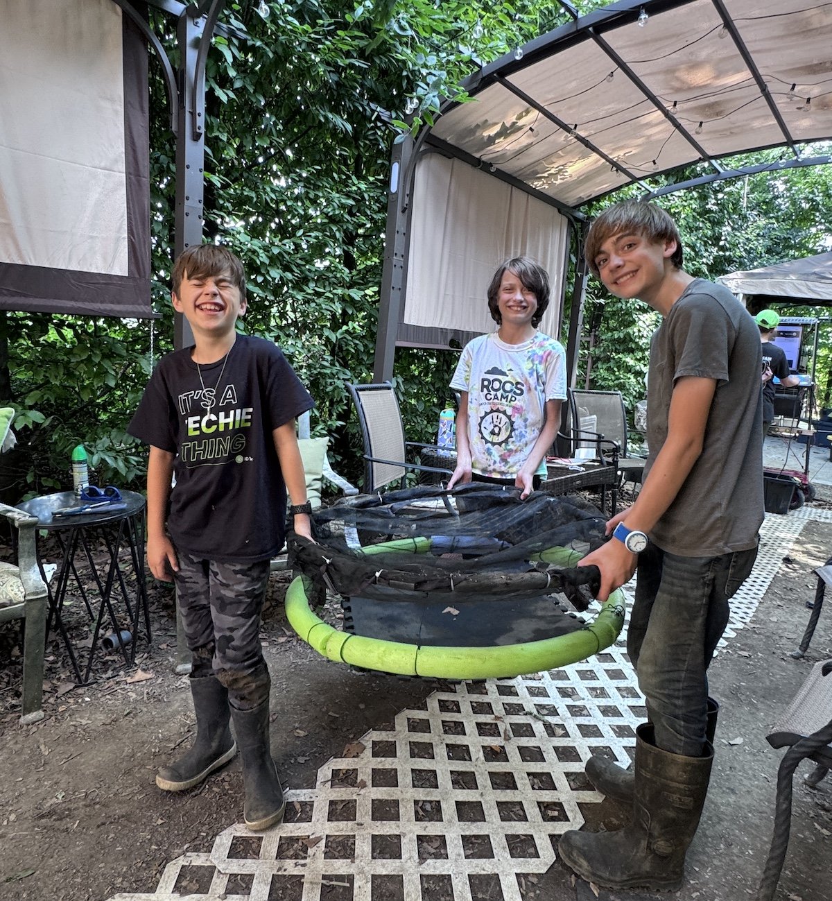 This is a guest camp blog from the underwater science team at Mezzacello Urban farm. Theo and Maxwell are the MenTerns in Charge of this experiment. Today we created a platform for the Fishacello Artificial Wetland.