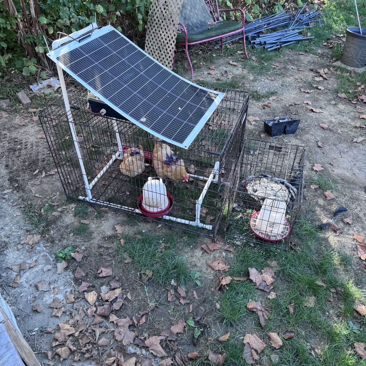 The gallery above represents innovations that helped build the mobile tractor with onboard food, water and energy. It’s a really integral tool for me to leverage at the farm. I have a few chickens that need to be isolated due to missing feathers. The mobile tractor is the perfect solution!