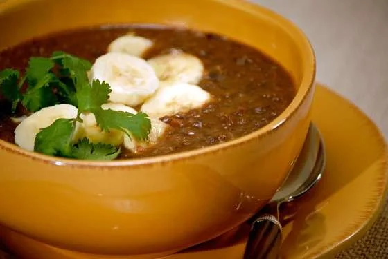 A Mezzacello favorite! Black Bean Soup With Bananas. Three tastes that go great together!